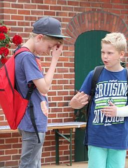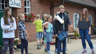 Erstmals präsentierten sich die Schauspieler dabei auf dem Hof Hegeler in Schlutter, wo sich die Zuschauer nicht nur über große, sondern auch über kleine Plattsnacker amüsieren konnten. Denn bevor es richtig losging, traten elf Koppel-Kinner auf und zeigten – frech und witzig – den 15-Minuten-Sketch „Schoolfree – dat weer woll nix!“.