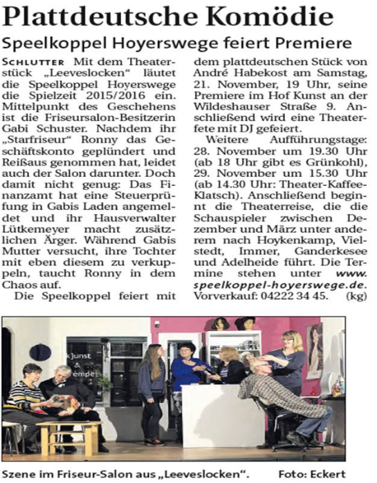 Die NWZ Oldenburg berichtet am 23.11.2015 von der Premiere