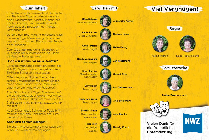 In der Pension „Himmelreich“ ist der Teufel los. Pächterin Olga hat alles andere als eine Glückssträhne. Nicht nur, dass ihre Köchin kündigt. Nein, nun erfährt sie auch noch, dass die Besitzerin der Pension verstorben ist. Durch einen Brief wird ihr mitgeteilt, dass der neue Eigentümer inkognito erscheinen wird, um sich ein Bild von der Pension zu machen. Zum Glück springt Anna, eigentlich Urlaubsgast, als Aushilfsköchin ein. Dann treffen die Feriengäste ein. Doch wer ist denn nun der neue Besitzer?